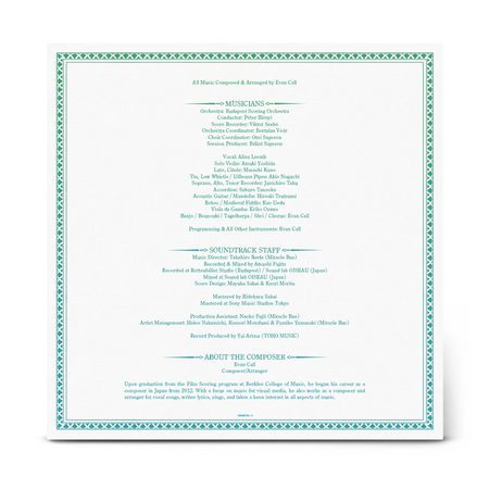 - 2 Colored Vinyl Discs: The release features two different color discs: Disc 1 on translucent emerald green and disc 2 on translucent cobalt blue – representing the rolling grasses and expansive sky on Frieren’s journey